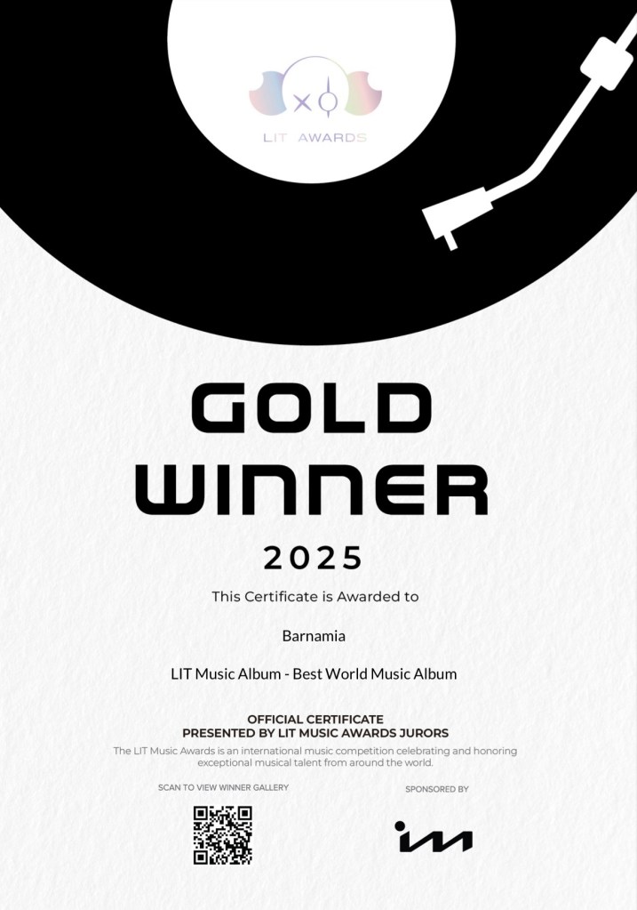 - 2025: Gold Winner Lit Music Awards – Mejor album Global Music “Barnamia”